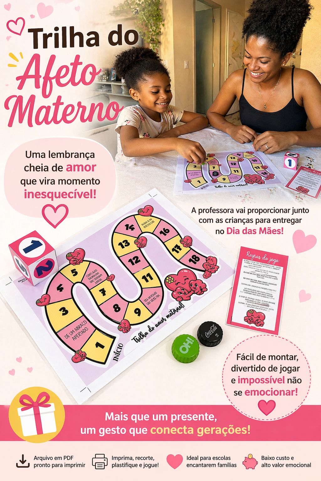 Esse jogo especial foi criado para proporcionar tempo de qualidade entre mãe e filho(a) — algo que hoje é tão raro, mas extremamente valioso. 💖